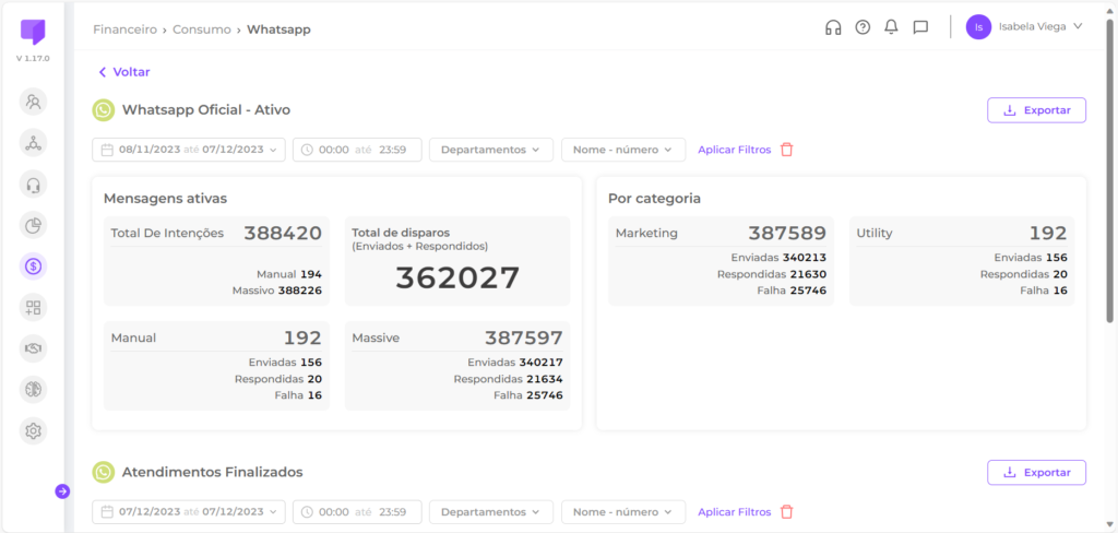 – Adicionado novo relatório que exibe todos os chats finalizados a partir da data selecionada.