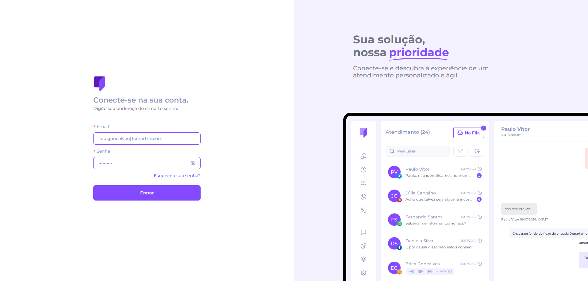 1.2. Agora, com um design mais moderno e alinhado ao novo visual, a tela oferece uma experiência mais intuitiva, com acesso rápido e um layout limpo e otimizado. Essa mudança garante uma primeira impressão mais agradável e profissional, marcando o início de uma experiência ainda melhor com o sistema.