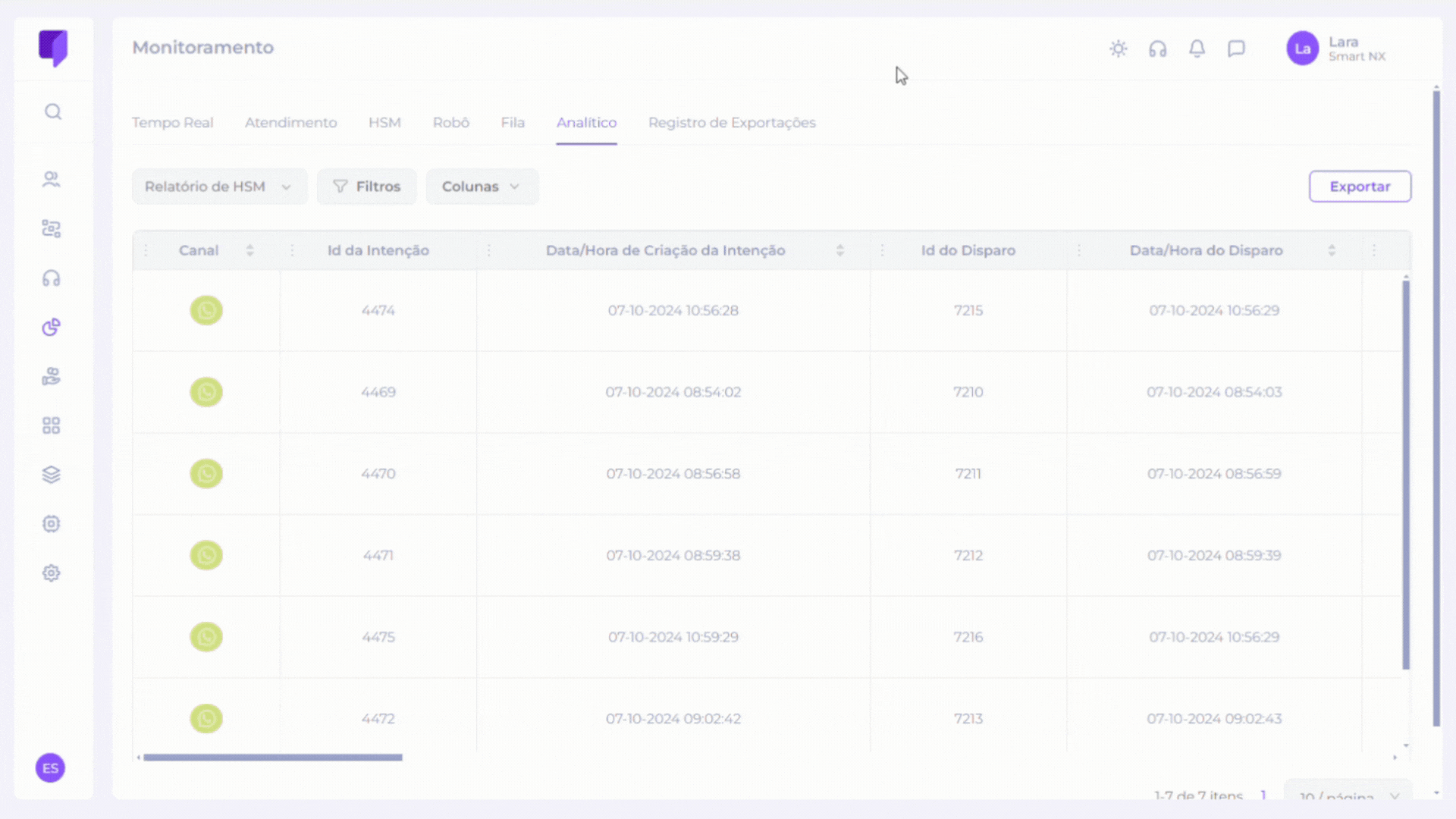 5.1. O relatório foi significativamente aprimorado para oferecer uma visão mais detalhada dos disparos realizados. Agora, ele exibe todos os disparos, independentemente de serem vinculados a um chat novo ou em andamento. Se um mesmo chat recebeu múltiplos disparos enquanto estava aberto, todos serão listados separadamente no relatório.